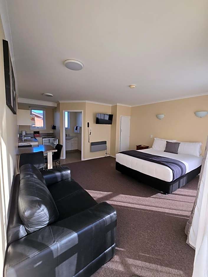 Features a queen-size bed and LCD TV with satellite channels. A kitchenette with a microwave electric frying pan, and tea/coffee making facilities is provided.